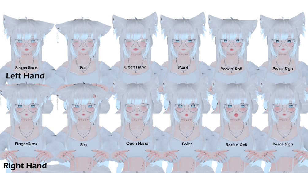 - 12 gestures (both hands different) with ear/tail movements.
